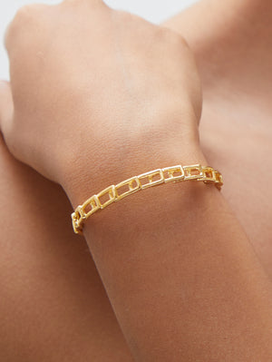 Every accessory you own speaks a thousand words. This bracelet from the Noori collection does too. Its textured Glossy Gold finish gives it an impressive shine and a classy look.