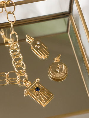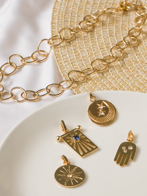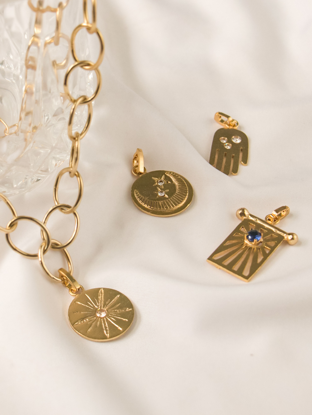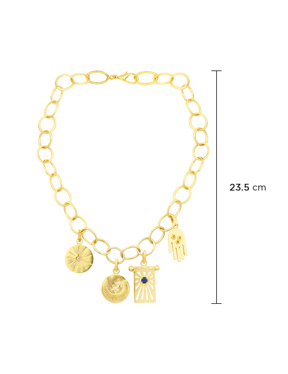 All Charm necklace Ark, Chaand, Nazar, Hamsa with beautiful chunky chain, the chain can be used as braclet as well.