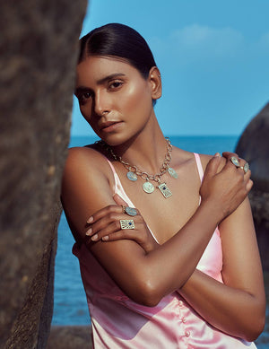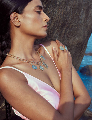Kavach, a culmination of all things empowering and the driving force of spirituality within you through the medium of 24K gold-plated designs with semi-precious gemstonestones