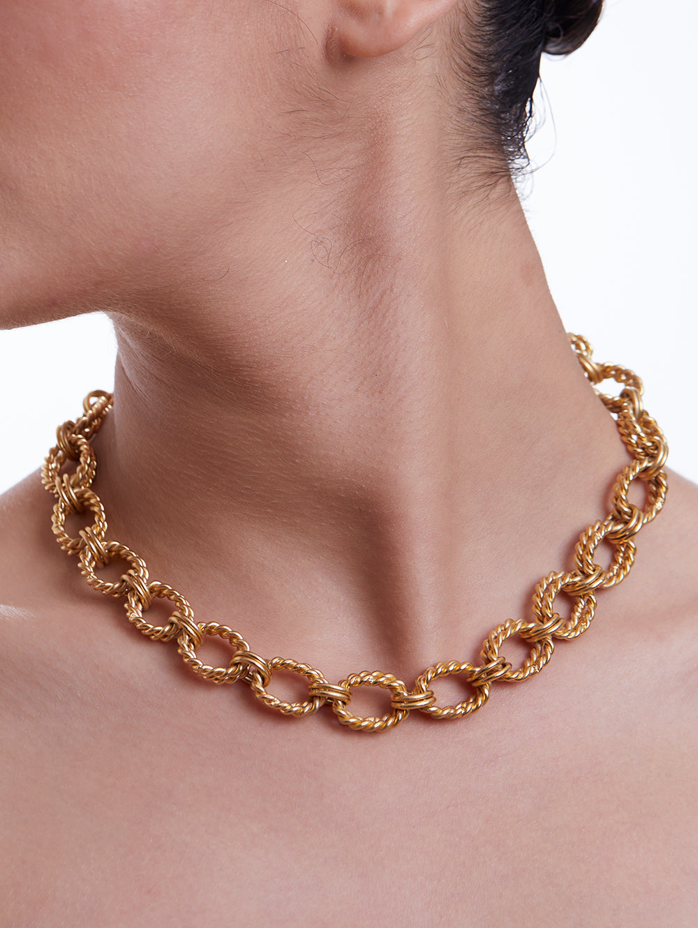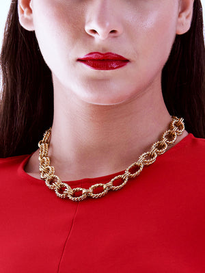 Make jaws drop with this modern necklace from the Naaz collection. Crafted meticulously, this necklace complements every occasion and is perfect for every outfit. The golden threaded knots give it a timeless look and make you stand out from the crowd. Take your fashion game to the next level now!