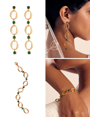 Inspired by the custom of passing down heirlooms, this chic emerald bracelet will catch every eye in the room and make you the centre of all the conversations. Showcase your style with this beautiful bracelet and earrings now!