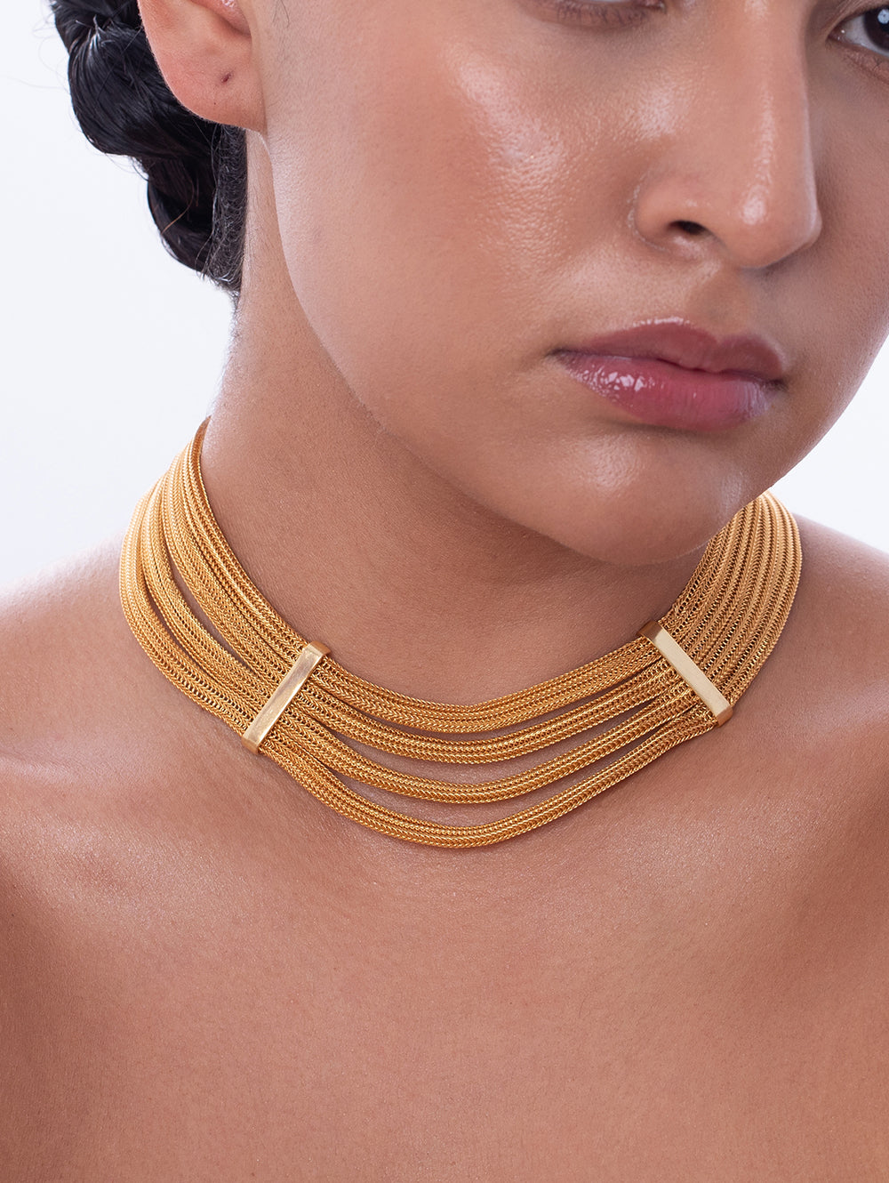 Gold Mesh Necklace + Short Earrings