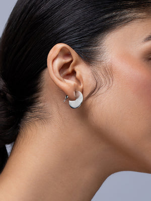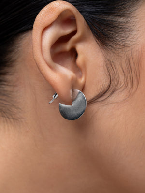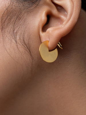Adorn Gold/Silver Crescent Earrings from the Sunehri Collection to elevate your ensemble in no time. Bold yet dainty and identical to Pac-Man, these beauties feature a unique crescent shape that hugs the earlobe. Perfect for every look, they have a golden hour hue and can be worn on your second piercing without discomfort.