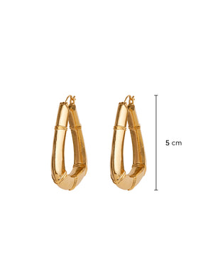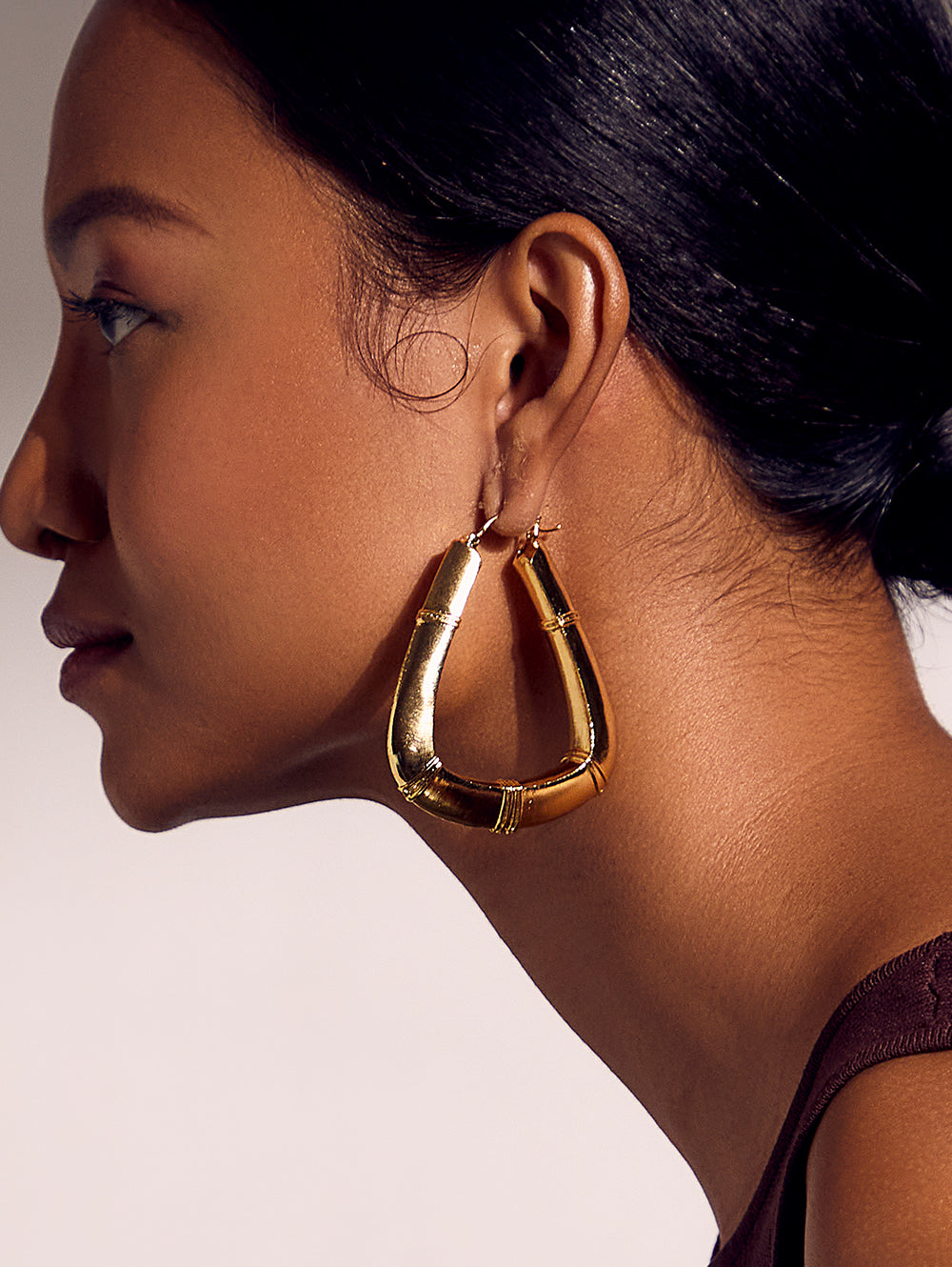 A pair of triangular hoops is a must-have if you prefer simple and elegant accessories. These hoops from the Noori collection have a Glossy Gold finish that adds the perfect golden touch to any outfit you wear!