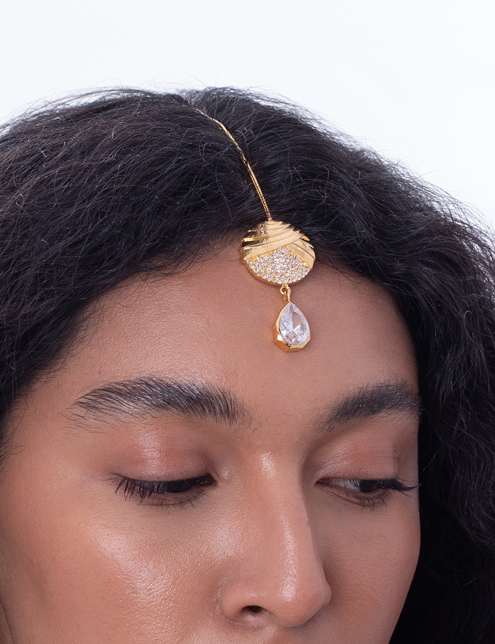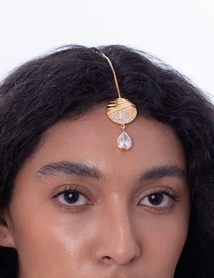 Radiate in the glow of Mastani AD Maang Tikka from the Mastani collection. Perfect for festive occasions or weddings, this beautiful maang tikka features a dazzling American diamond in the centre that gracefully sits on your forehead. Its traditional look and modern appeal capture gazes leaving a lasting impression