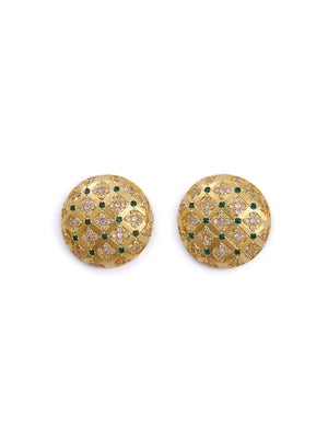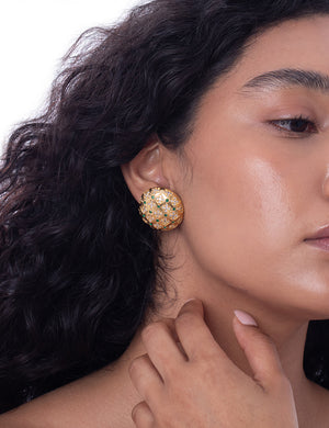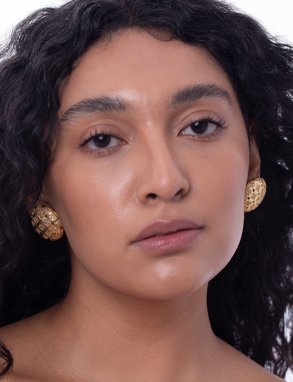 Dazzle in the Mastani Emerald Studs from the Mastani collection. With a unique twist, these beauties feature stunning emeralds with a criss-cross design adding a pop of colour to your ensemble. Radiant yet light-weight, they are intricately designed and are perfect for a casual as well as a formal look!