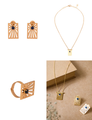 Kavach, a culmination of all things empowering and the driving force of spirituality within you through the medium of 24K gold-plated designs with semi-precious gemstonestones