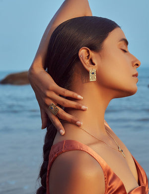 Kavach, a culmination of all things empowering and the driving force of spirituality within you through the medium of 24K gold-plated designs with semi-precious gemstonestones