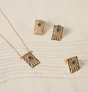 A delicate yet glamorous piece studded with Blue Sapphire gemstone to mark the classic Evil Eye. Nazar, a shield from evil and blue sapphire to bring you energies of good karma, motivation and commitment.