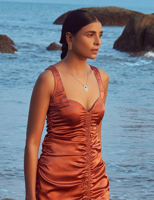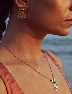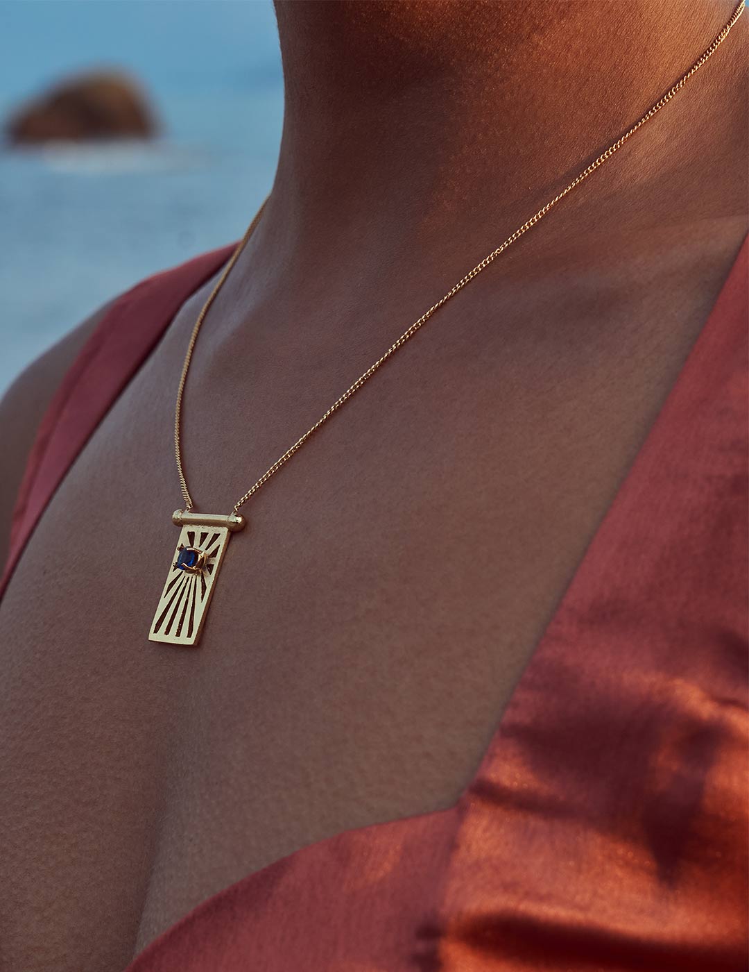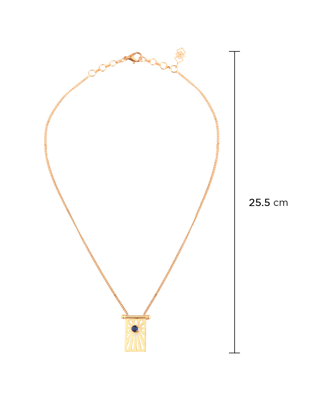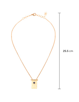 A delicate yet glamourous neckchain studded with Blue Sapphire gemstone to mark the classic Evil Eye. Nazar, a shield from the evil and a blue sapphire to bring you energies of good karma, motivation and commitment.