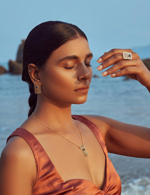 Kavach, a culmination of all things empowering and the driving force of spirituality within you through the medium of 24K gold-plated designs with semi-precious gemstonestones