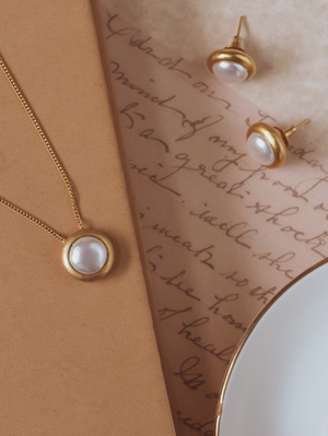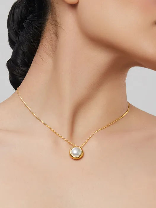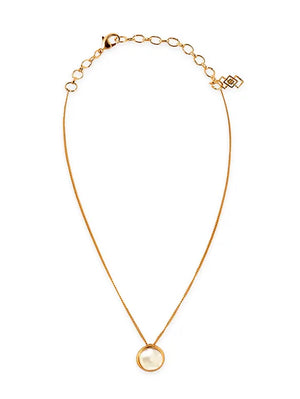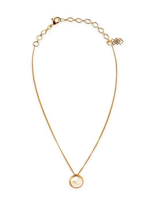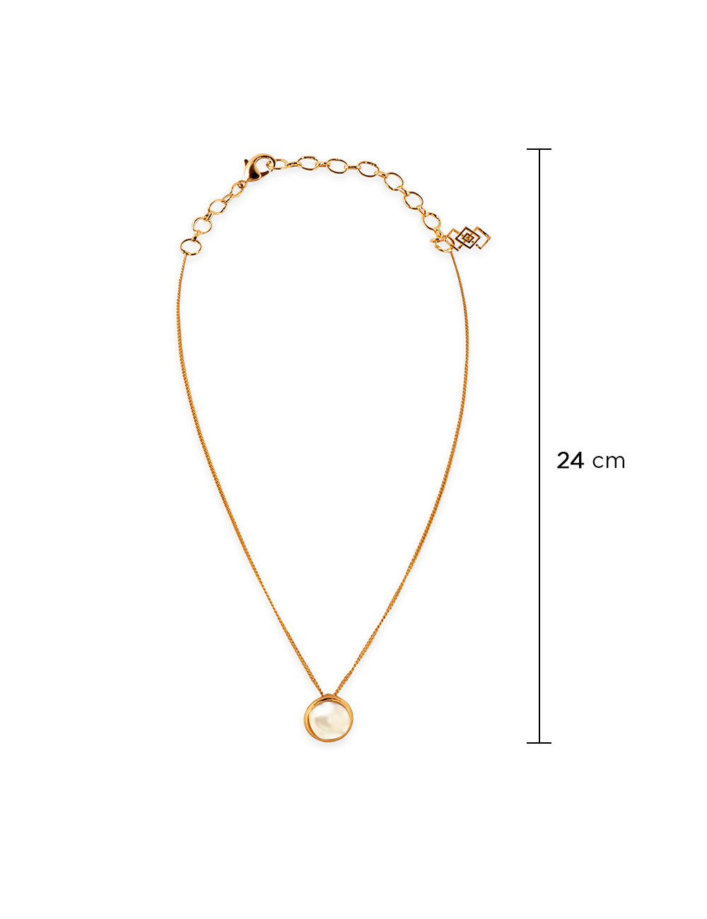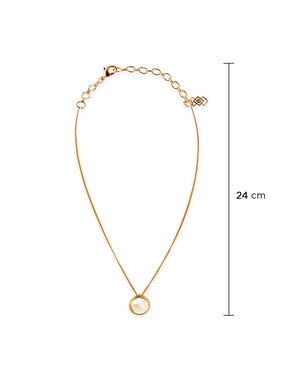 Peacemaker Neckchain Not so tiny mother of pearl nestled in the center of a delicate gold chain, this neckchain can be your go-to accessory. Pair it with the Peacemaker Studs for a full look.
