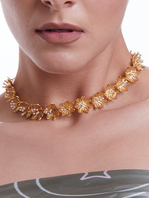 Dazzle and shine with this one of a kind modern yet chic necklace from the Naaz collection. This masterpiece is a work of art, and its each petal is sculpted to perfection. Add an aura of unmatched luxury to your ensemble, and be the centre of attraction wherever you go!