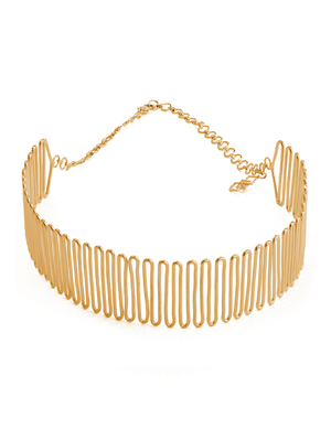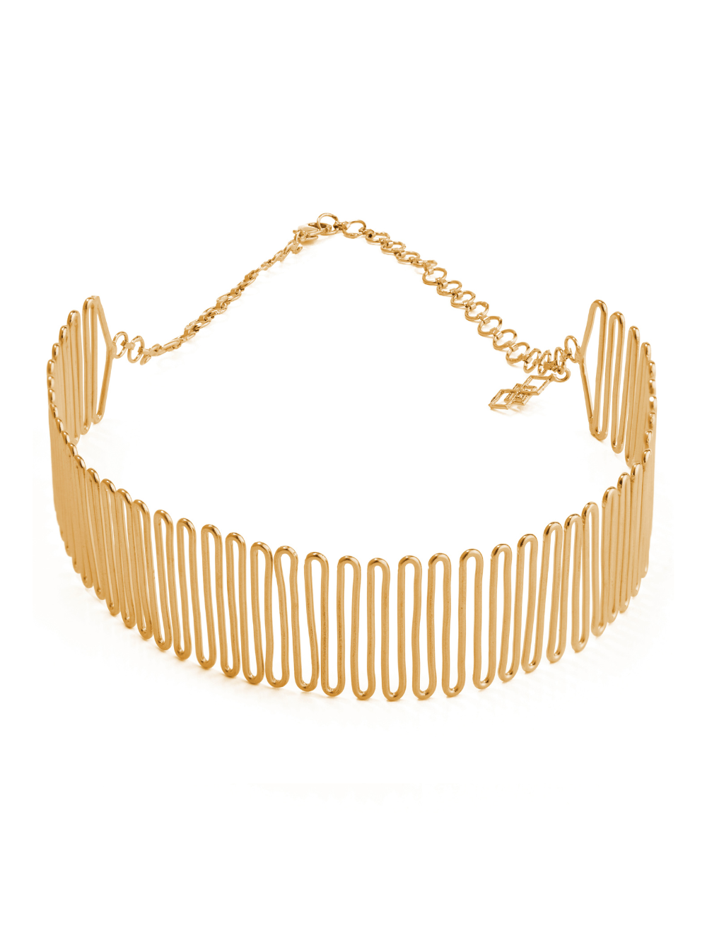 Draw attention to your neckline with this Golden Spiral Meadow Choker from the Saya Collection. Embodying the graceful nature of the shadow, its flowing lines make it stand out from anything own. Easy to wear and durable, this golden choker is perfect for all outfits and brings natural radiance to your look subtly.