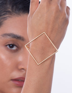 Add a minimalistic touch to your ensemble with the Square Handcuff from the Hatke collection. Crafted with precision, this handcuff features a unique square shape that sets it apart from traditional round designs. Its minimal aesthetic appeals to everyone and is perfect every occasion from a night out to your everyday look.