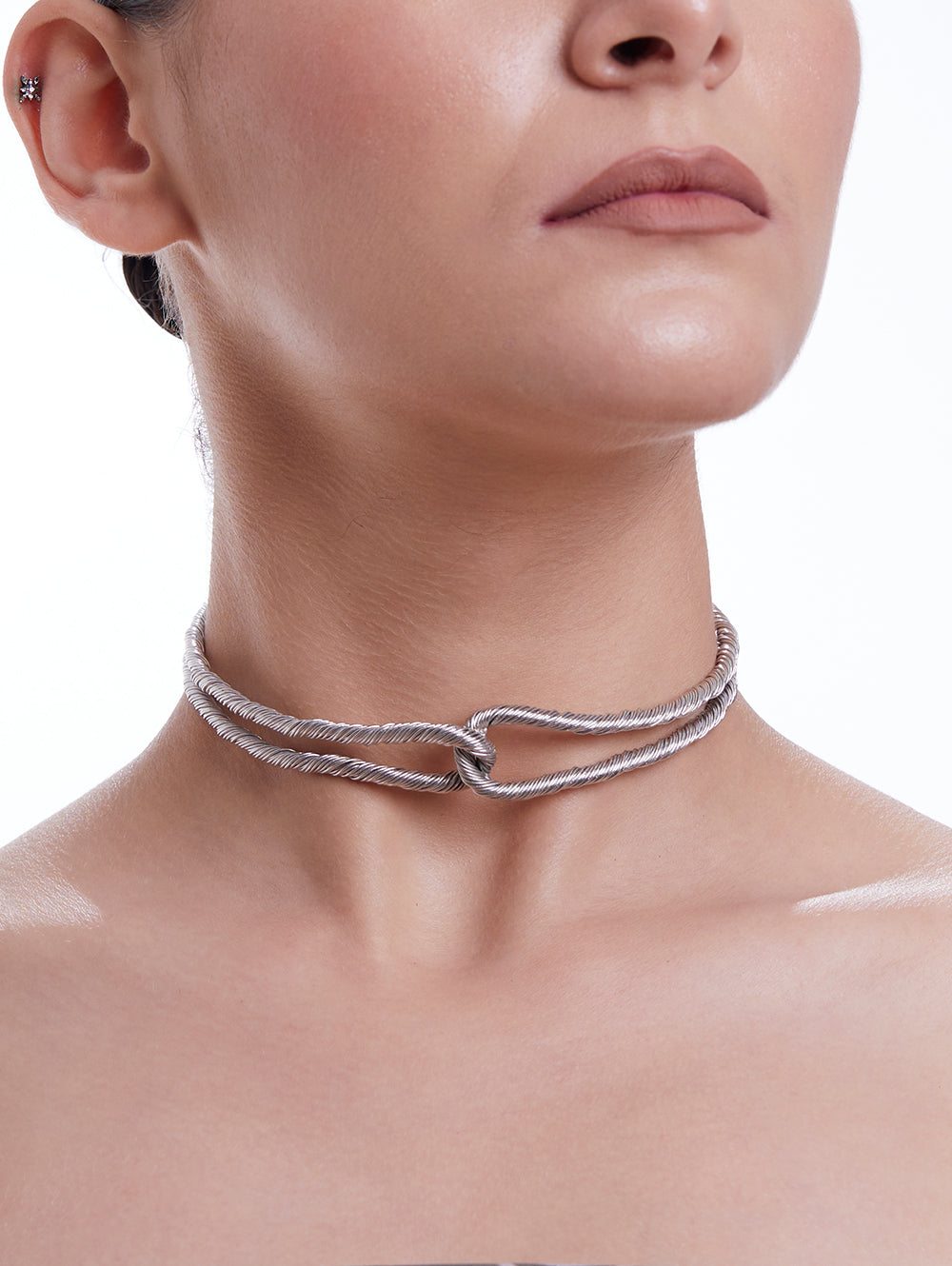 Give your ensemble the perfect finishing touch with this modern yet elegant choker from the Naaz collection. Experience the allure of true craftsmanship with intricate interlocks that give it a rich look. This masterpiece is all you need if you prefer jewellery that’s just as unique as you are!